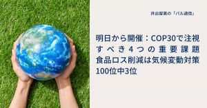 明日から開催:COP30で注視すべき4つの重要課題 食品ロス削減は気候変動対策100位中3位